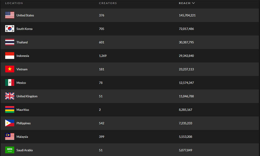 B.I's achievements doesn't just end here. In fact, #BTBT has now 370 million views on TikTok while the hashtag #BTBTChallenge garnered a total of 137 million views accumulating a total of 507 million views combined. The sound has also been used for 40 000 times with 54 million likes, 290 000 comments and 536 000 shares with an engagement rate of 14.7%.In addition, #KeepMeUp has now gathered a total of 25 million views and #KeepMeUpChallenge with 12.1 million views having 37.1 million views combined. As of writing, Keep me up accumulated a total of one million likes, 11 000 shares, and 12 000 comments with an engagement rate of 6%.As per top audience, United States and South Korea topped B.I's list with a total reach of 220 million. Out of his 31 tracks, BTBT has the most reach in South Korea with 126 million reach on TikTok.