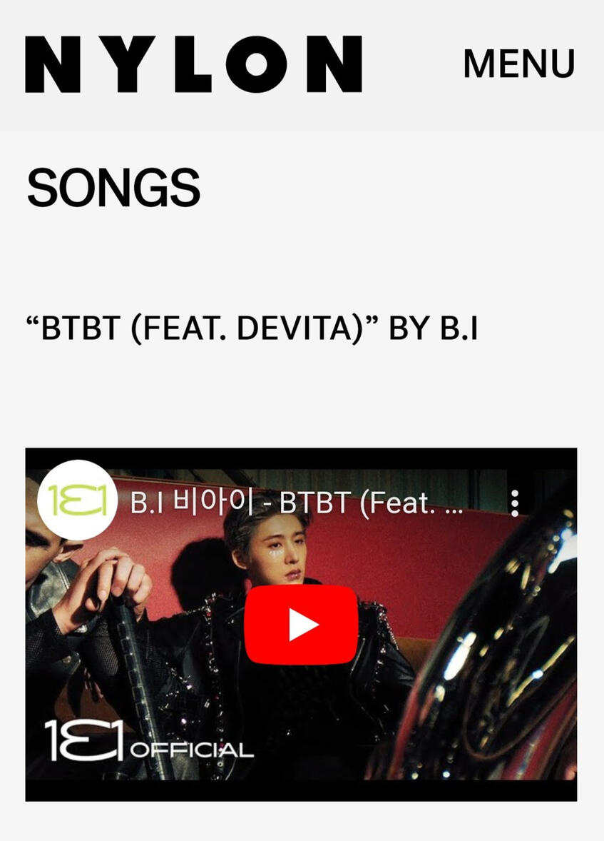 NYLON Magazine also listed B.I's BTBT with Soulja Boy featuring DeVita on their Top 20 Best K-Pop Songs of 2022.
